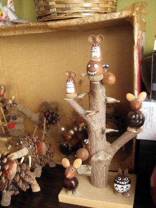 当日皆さんで作った作品 胴体はクルミ 頭はドングリ 耳はカボチャの種