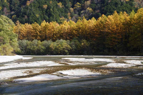 黄葉した唐松と六百山 | 大正池に映し出された焼岳を縦で撮る | カッパ橋と穂高 |
