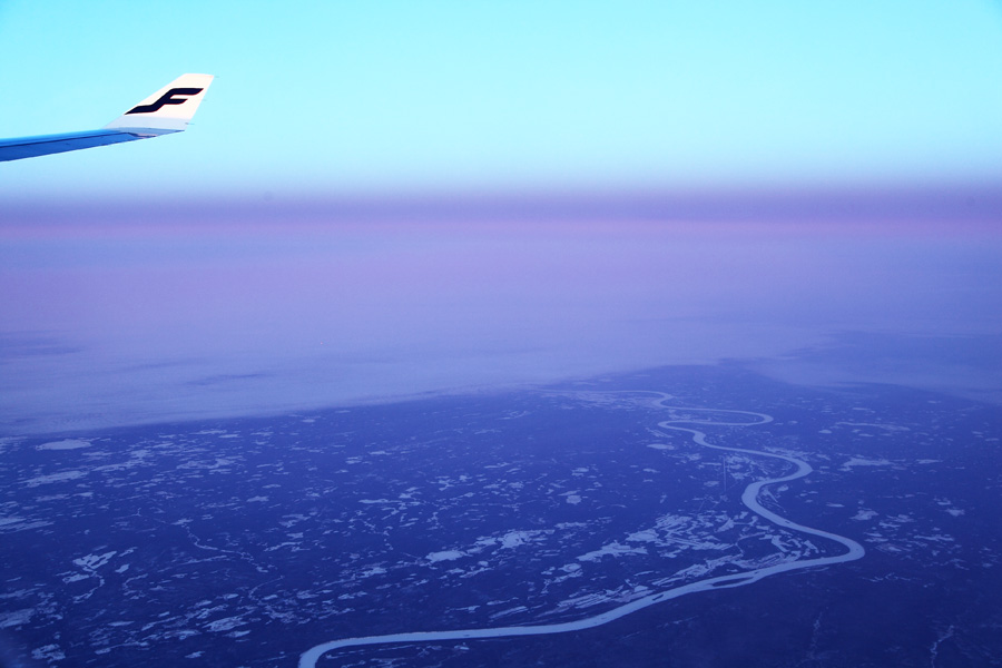 | 離陸後2:30 川も凍ってるみたいだ |