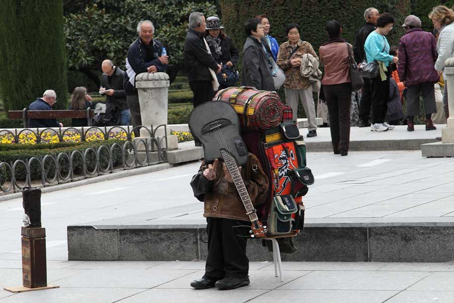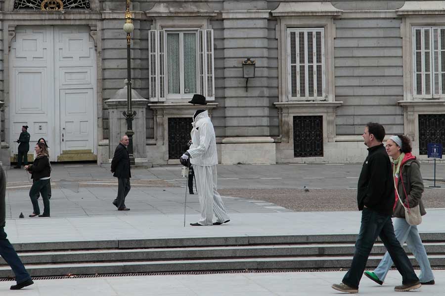 途中休憩した店の前に立つドン・キホーテの銅像 |