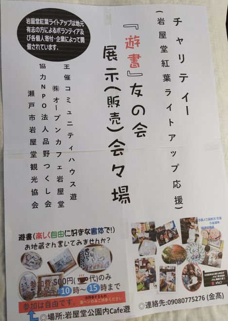 品野接骨院はCafe遊として人生100年時代を迎えた今、接骨院・痛みの治療室として45年の実績と信頼培った経験を生かし、誰でも気軽に健康づくりの相談場所として、週末(土)は自然豊かな❝岩屋堂公園❞で挽き立てのコ-ヒ-提供、又遊書や癒しの地蔵画教室を開催中。
